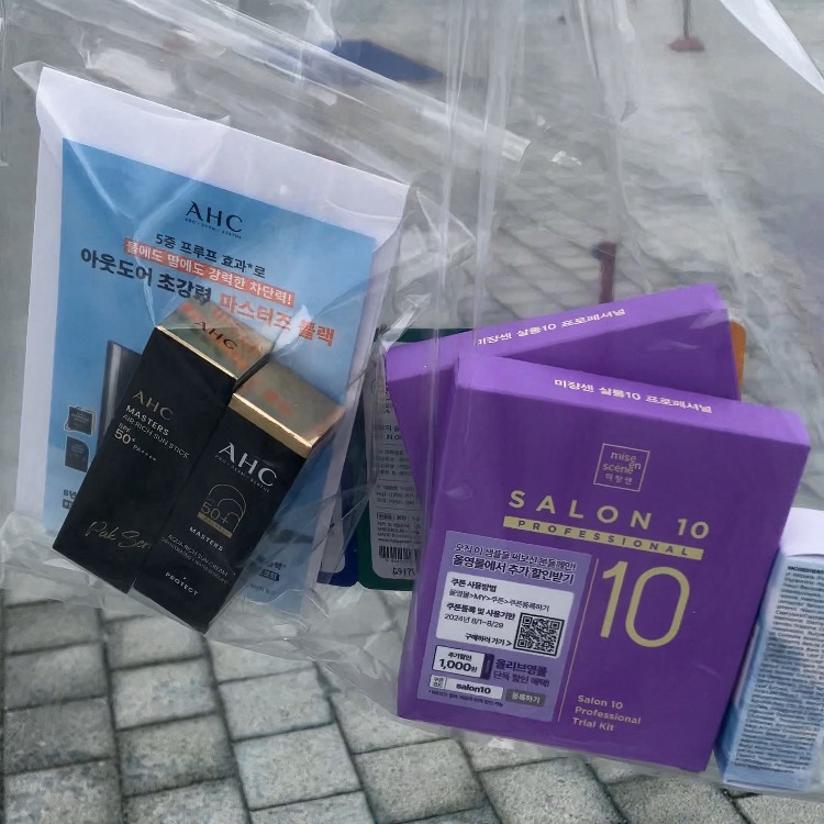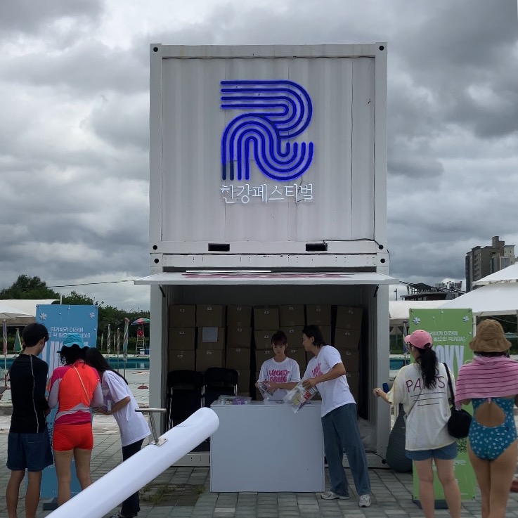 수영장 안에 엘르코리아&에스콰이어 이벤트 부스가 있어요. 인스타그램을 팔로하면 선크림과 기초화장품 등 샘플을 잔뜩 나눠줘서 썬크림을 따로 챙겨갈 필요가 없었어요.